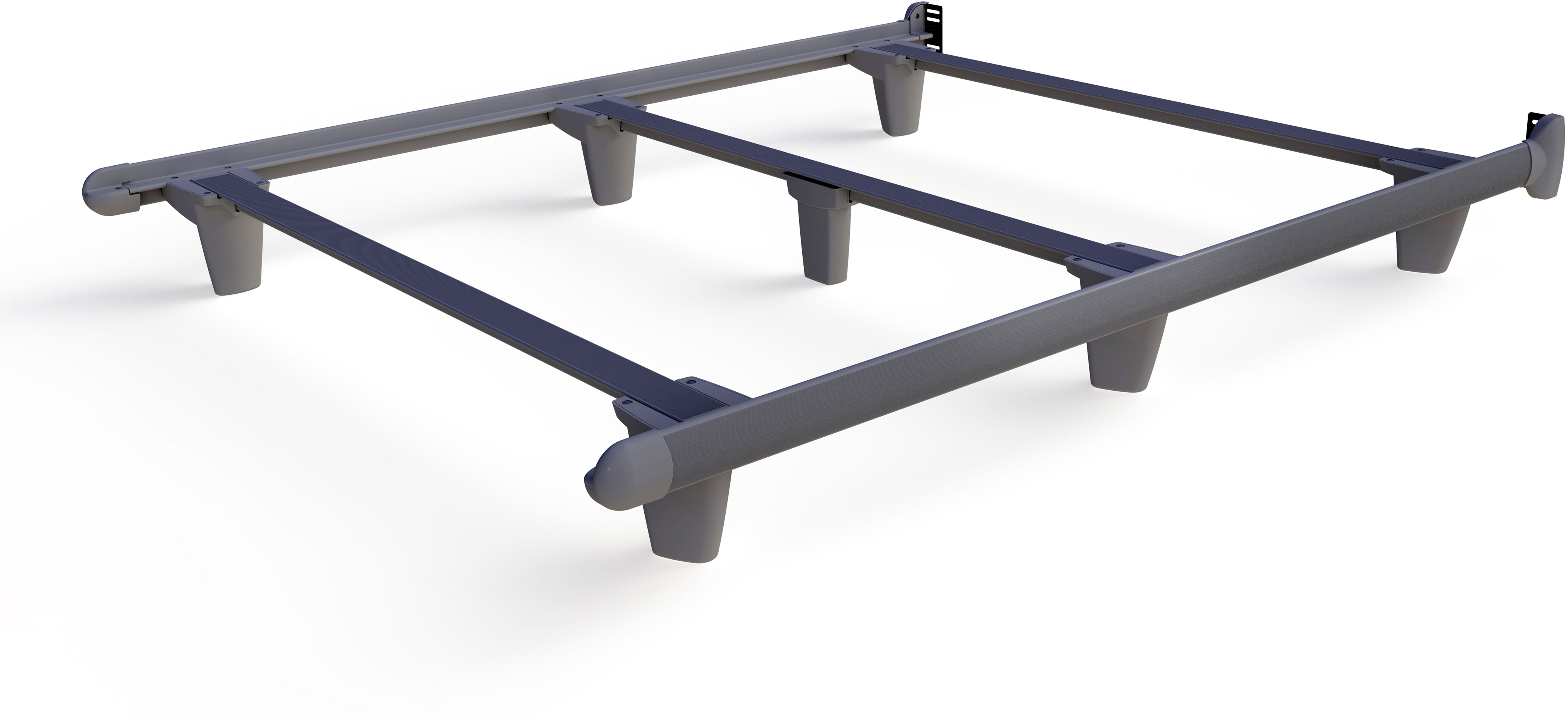 Both the steel cross + side rails feature T-shape profiles that give the frame a rigid, zero-flex structural advantage.
